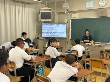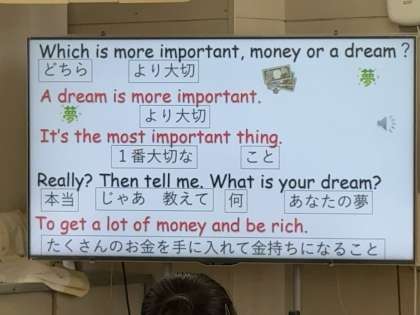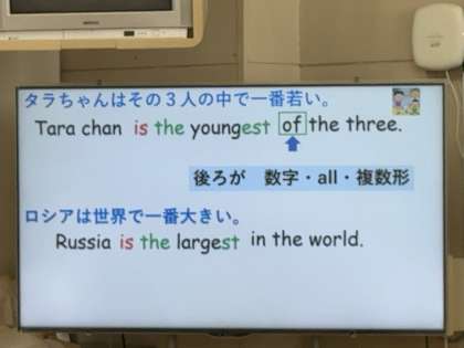 リズムに合わせて英文を読んでいます。また、最上級の復習もしています。