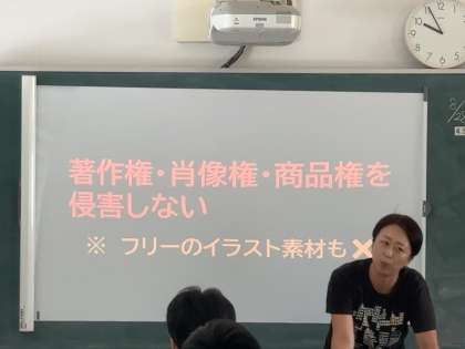 デザインについて学習しています。著作権などを考慮しながら考えることが大切ですね。