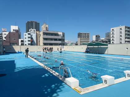 男女とも水泳の授業です。明日の水泳大会に向けて頑張っています。