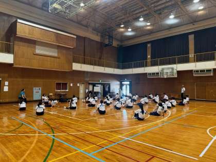 今日は体育館内でサーキットトレーニングに取り組むようです。