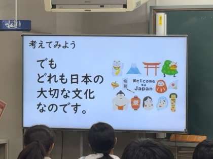 月曜日に引き続いて、文化の違いをどのように認め合い、尊重しあっていくのが良いのかを学習しています。
