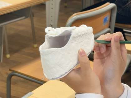 紙粘土でスニーカーを作る取組が続いています。細かな細工を施してますね。