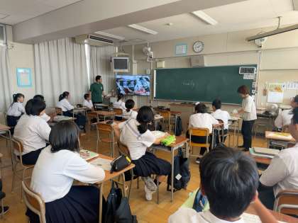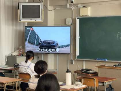 キャリア教育の一環で、自動車のエンジニアに関するビデオを視聴しています。