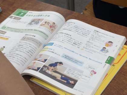 応急処置に関する学習をしています。今後は練習用の人形を相手に心肺蘇生法の実習をするそうです。