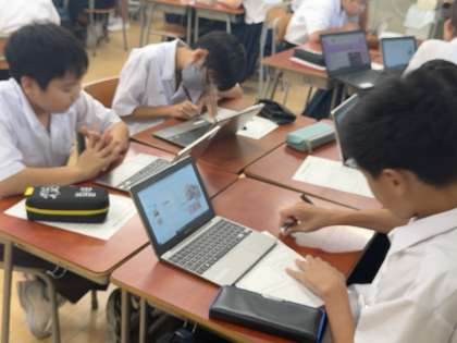 グループごとで、決めた国について、調べ学習をしています。