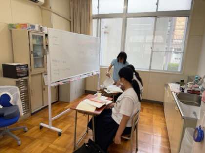 勉強が終わって、それぞれの中学校に帰る際には、各自で中学校へ電話をかけることになっています。