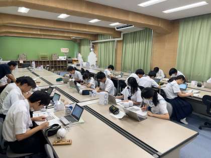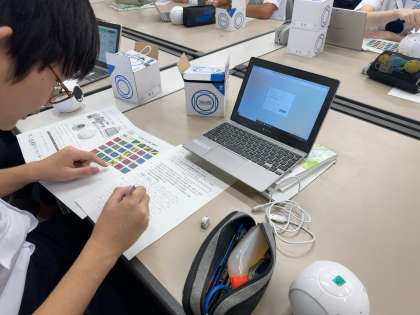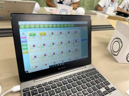 プログラミングをして、イルミネーションを点灯させるための設定に取り組んでいます。