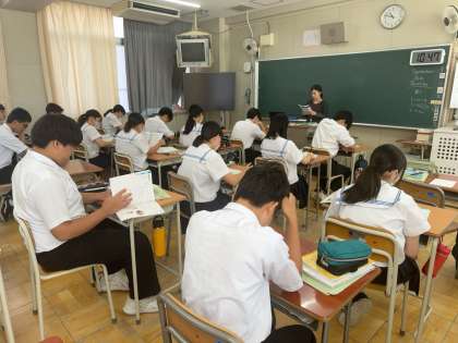 単語テストが行われる前に、テスト範囲の単語を発音しながら確認しています。