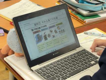 日本国憲法に定められている「平和主義」について、考えを深める学習に取り組んでいます。