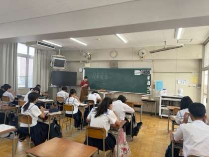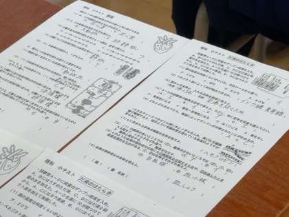 小テストが返却されて解説を聞いています。中間テストにも関係あるのでしっかり聞いています。