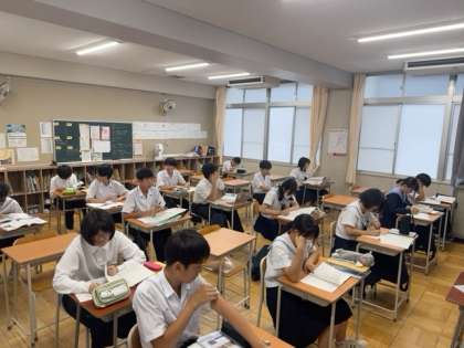 3年生は、1時間目のテストがありませんので、2・3時間目のテストに向けた自習時間となっています。