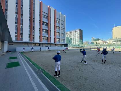 グランドではソフトボールのウォーミングアップが行われています!