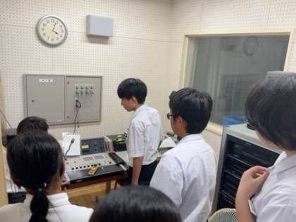 放送室で、お昼の放送をするための手順を確認しています。