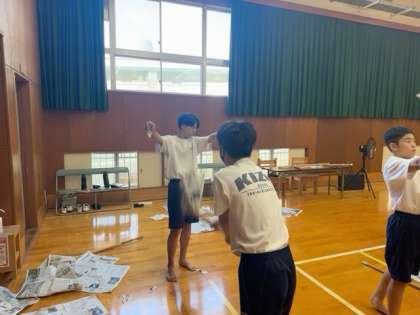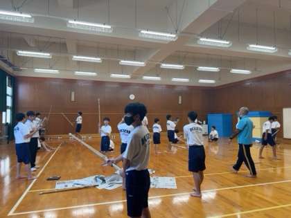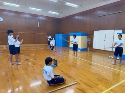 剣道で竹刀を真っ直ぐ振る練習に取り組んでいます。