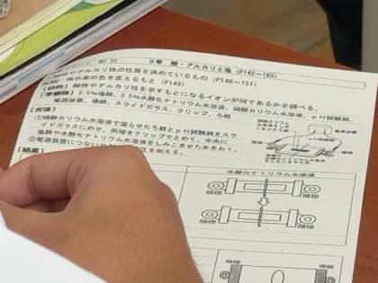 さまざまな液体について、酸性・アルカリ性・中性のどれにあたるかを学んでいます。
