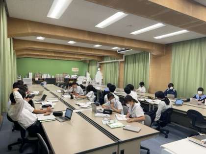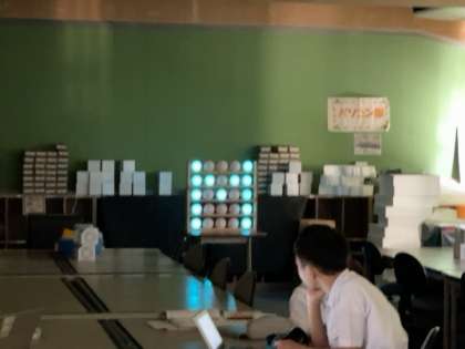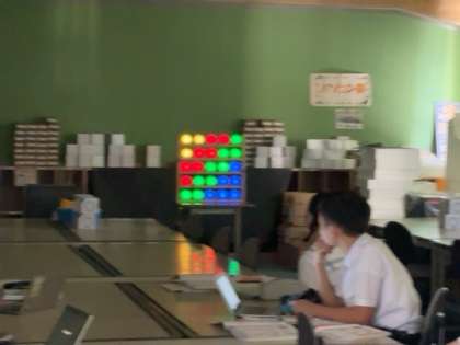 プログラミングで設定したイルミネーションを実演しています。上手くいけたようですが、文化祭でも展示されるとのことです。