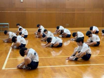 男女とも、準備運動を入念に行ってから、活動に入っています。