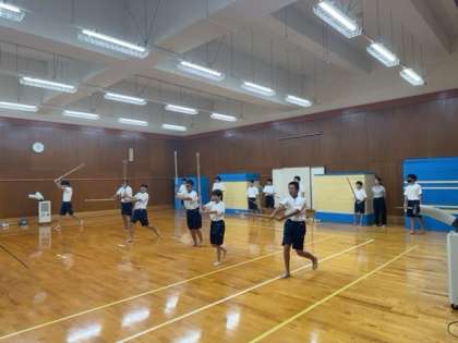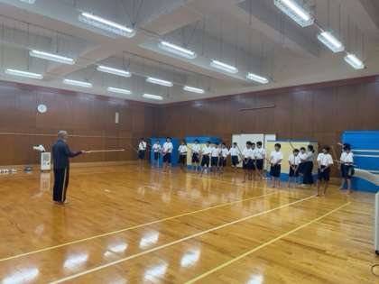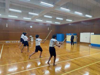 剣道の授業が続いています。すり足と声を合わせて「面」を打つ練習に取り組んでいます。