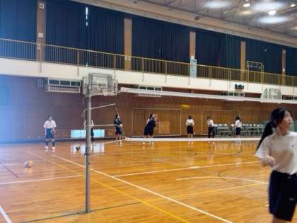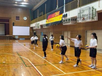 バレーボールの授業が続いています。サーブを打つ練習に取り組んでいます。