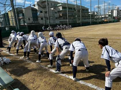 最初は4チームによるリーグ戦です。今日は中央区の上町中学校と戦いました。結果は14-7のコールド勝ちでした。来週に向けて、また頑張ります。