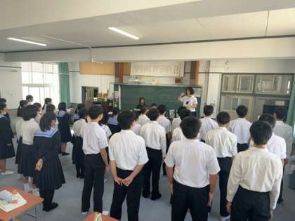 2クラス合同で、文化祭の合唱に向けた練習に取り組んでいます。