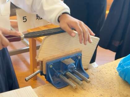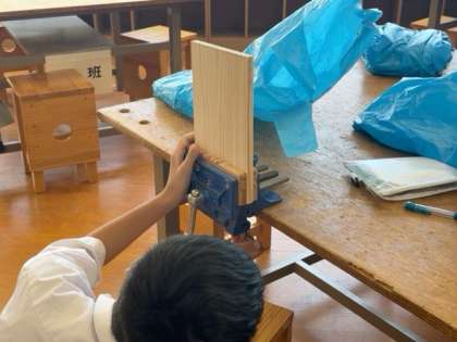 木材加工の実習が進められています。それぞれ学習デザインしたラックができあがるようです。