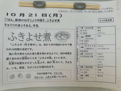 10月21日(月曜日)の給食です!