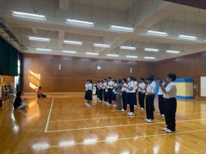 格技室をステージに見立てて、通し練習に取り組んでいます。