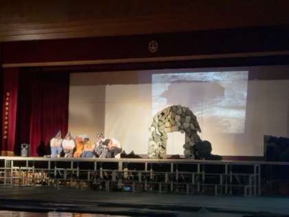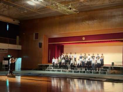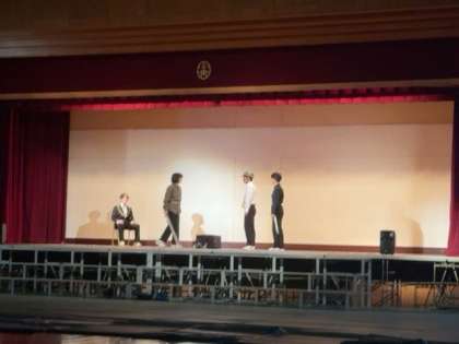 体育館のステージで通し稽古をしています。いよいよ完成が近づいています。