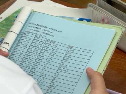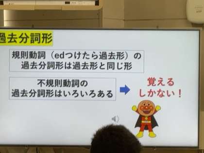 一般動詞の過去形や過去分詞形をアンパンマンのテーマソングの替え歌で覚えています。
