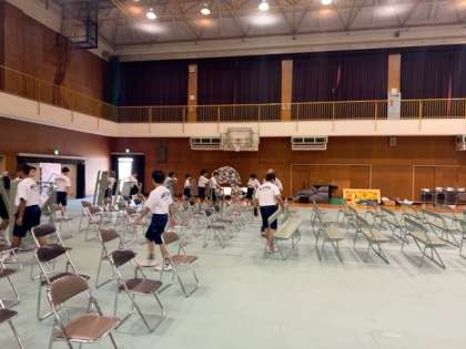 2年生は舞台発表の会場となる体育館の準備にあたっています。
