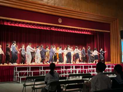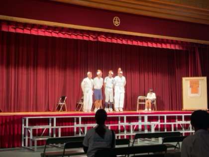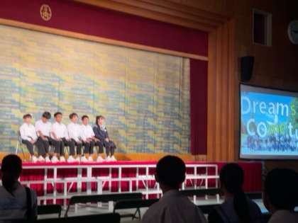 舞台発表のトップバッターは2年生でした。タイトルは「Dreams come true 」で、それぞれの将来のことについて考える発表となりました。