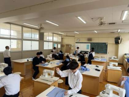 裁縫実習が続いています。ミシンを使った縫込みに取り組んでいます。