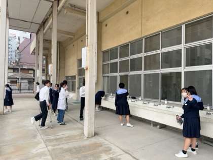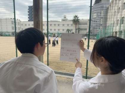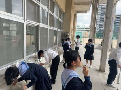 先週に引き続き、給食後に取り組んでいます。今日は1年1組の皆さんが参加しました。(写真は、昨日の3年2組のものです)