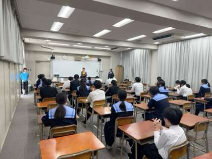 2年生の学年集会では、学生服の袖のボタンの由来や、セーラー服の大きな襟の由来などの話から、現代における制服(標準服)の意義についてのお話がありました。