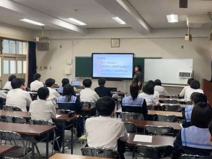 先週の保護者向け進路説明会の内容をもとに、進路指導の先生からお話を聞いています。