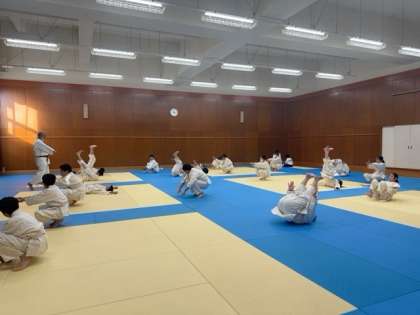 受け身の練習に取り組んでいます。