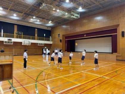バレーボールの授業が続いています。グループごとで声をかけ合いながら、パスを回しています。