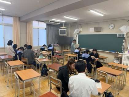 3年生を対象に、放課後に集中学習会が開かれました。英語と数学の課題プリントに取り組んでいます。いろいろな先生が学習支援に入っています。