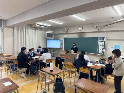 今日(11月15日)の5・6時間目に、高校から先生に来ていただき、出前授業を行っています。