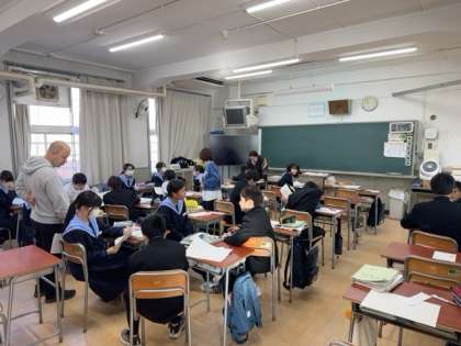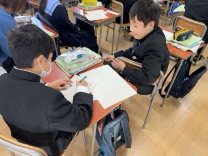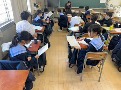 英語スピーチに向けて、ペアで練習に取り組んでいます。