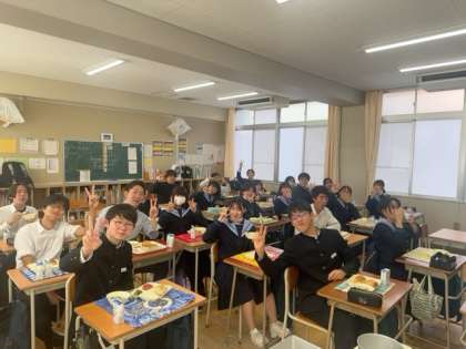 【3年生】クボタスピアーズ大阪のみなさんと一緒に給食を食べました!
