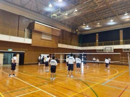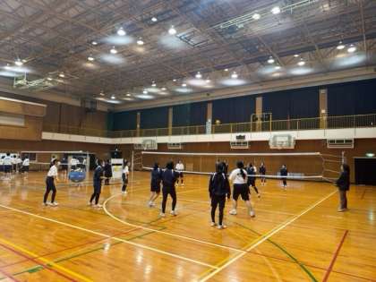 男女とも、バレーボールの試合形式の練習に取り組んでいます。