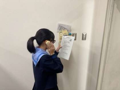 各事業所の代表生徒が、学校から各担当者へ電話をかけています。