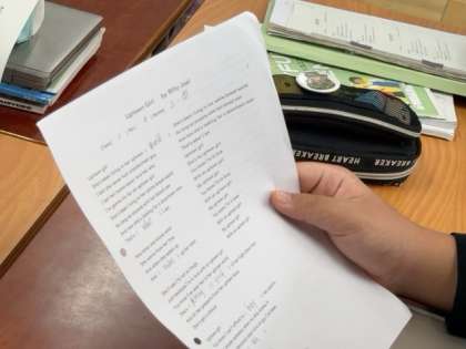 ブルージョエルの「アップタウンガール」を歌ってから、授業が始まります。