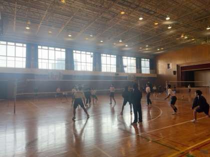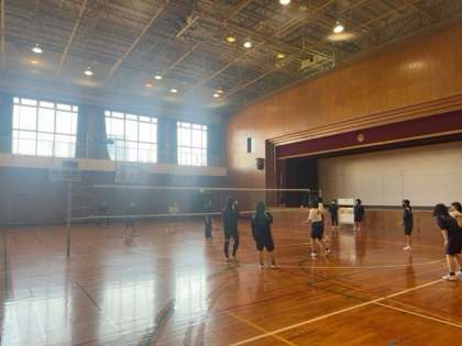 球技大会に向けて、バレーボールの試合形式の練習に取り組んでいます。