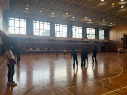 球技大会に向けて、バレーボールの試合形式の練習に取り組んでいます。