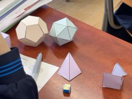 多面体の模型を作って、その特徴などを視覚的に理解していきます。