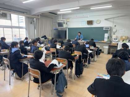 来年1月に実施されるチャレンジテストプラスの説明を聞いています。