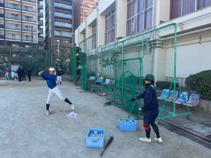 パソコン部のみなさんが新入生に見せるための部活紹介動画を作成しています。今日は野球部の活動の様子を撮影しています。